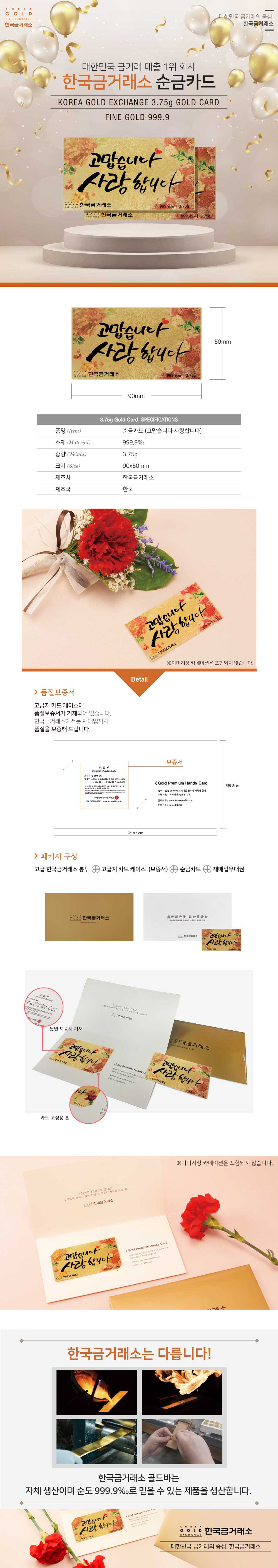 순금 카네이션 카드 3.75g (고맙습니다 사랑합니다)