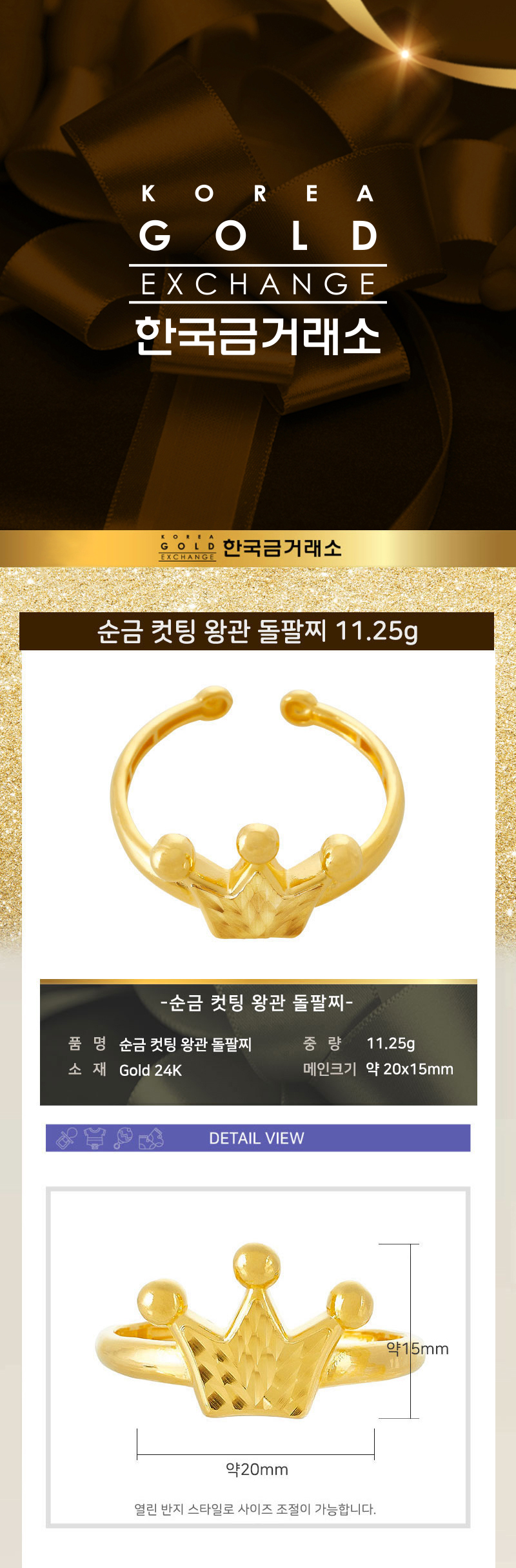 • 순금 컷팅 왕관 돌팔찌 11.25g